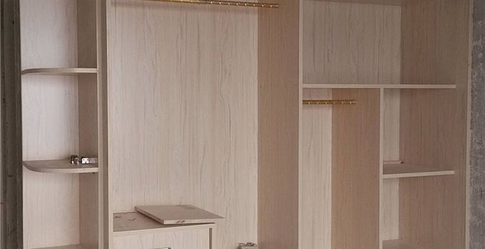 装饰面板在运到工地后,应用干毛巾擦去浮尘,连续涂刷两遍清漆封底。所有装饰面板都应该平放,最下面垫一张大芯板,上面压一张大芯板,不能立着放,这样就可以防止面板开裂、起翘