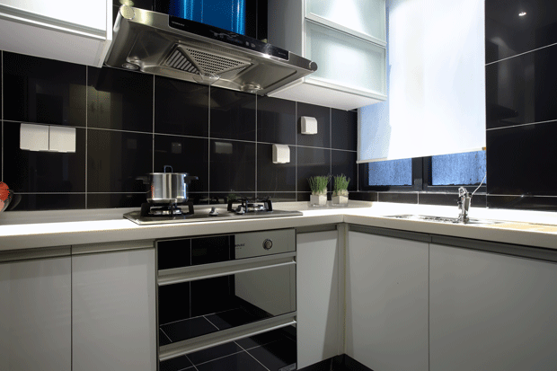 很多人觉得房间小就弄个开放式的厨房,其实不然。我们自己在家做饭,总会有油烟,这样客厅就会飘进油烟落在沙发、电视、墙壁上,很难除尽。水池上方安装一个柜子放置物品,买些挂钩将刀具等悬挂起来