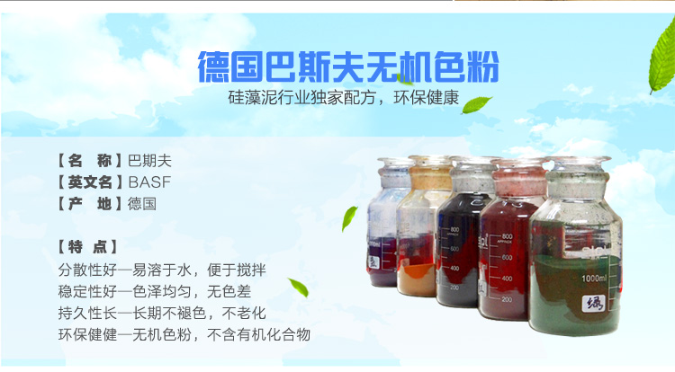 我们可以向大家保证,我们的色粉也是环保无污染的。我们是采用进口的色粉,德国巴斯夫无机色粉。