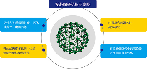 笼芯陶瓷技术:运用竹炭材料,经高科技技术的加工,形成笼型框架结构,又具有无序多孔洞特性,使有毒有害物质能够瞬间被均匀而大量的吸入其中,同时,这些吸附的材料又不能逃脱的特种性能,能够有效提升墙体装饰材料在吸附室内有害物质的时效性和净化效率。具备良好的调湿性能,抑制霉菌滋生还具有激发红外线的作用。有使吸附的有机污染物被催化、分解、降解、氧化、还原为水、二氧化碳等还原性能。
