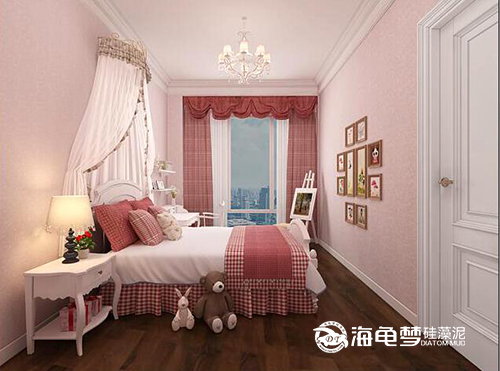 海龟梦VR全景图选定三房二厅户型,肌理选用的是喷涂工艺,喷涂墙面的表面有颗粒状效果,整体表现凹凸有致适合有个新但不喜欢太复杂样式的人群,价格适中,也是客户最喜欢的一种肌理。主卧和客厅选用是米黄色,温馨大方、男孩房选用浅蓝色,阳光明媚、女孩房选用浅粉色甜美可爱,适合更多消费者的选择。