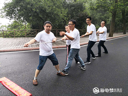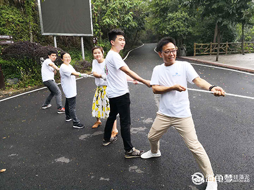 一路上欣赏美丽的自然风光,登顶后,再组织几场拔河对抗比赛。