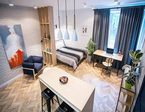 根据房间的形状来选择颜色:颜色能在一定的程度上改变人们对房间形状的感觉。例如冷色可使较低的天花板看上去变高了,使狭窄的房间变宽了。在房间远端墙上用深色度的颜色,会使那堵墙产生前移的效果。类似的效果可改变任何房间的外观。