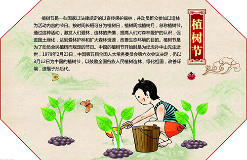 1979年,全国人大常委会将每年的3月12日定为我国的植树节,1981年全国人大《关于开展全民义务植树运动的决议》号召全国各族人民“人人动手,每年植树,愚公移山,坚持不懈”,每人每年义务植树3棵至5棵,从此,义务植树成为一项公民必须履行的义务。植树造林,绿化祖国,改善环境,造福子孙后代,建设生态林业,是我们不变的承诺。