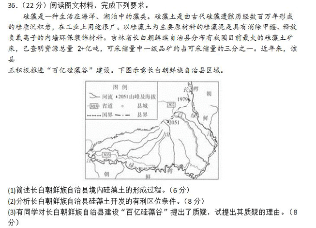 (3)有同学对长白朝鲜族自治县建设“百亿硅藻谷”提出了质疑,试提出其质疑的理由。(8分)