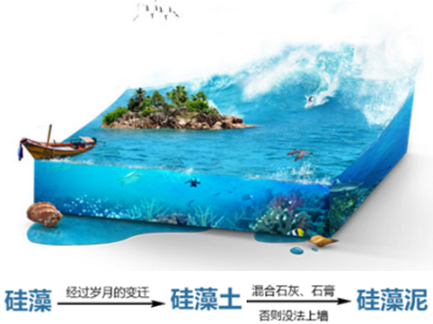 硅藻泥的主要原材料是历经亿万年形成的硅藻矿物--硅藻土。就像沙子、石英石的主要成分也是二氧化硅。而硅藻泥是由硅藻土+成膜物质+特种颜料+助剂等材料而成的一种天然环保内墙装饰材料,用来替代墙纸和乳胶漆等墙面材料,还具有室内空气净化作用。