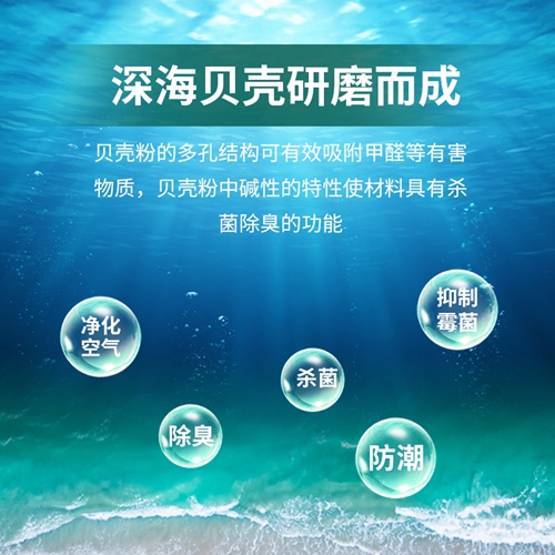 使用寿命可以长达15年以上,吸附甲醛,净化空气,抗菌抑菌、会一直伴随贝壳粉墙壁,永不失效。