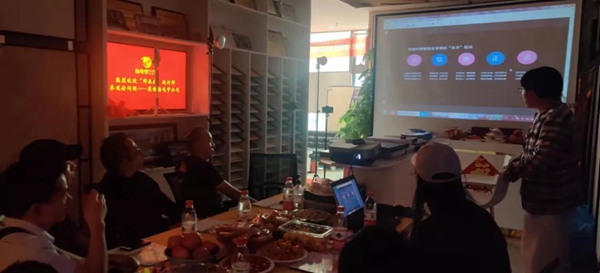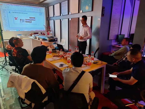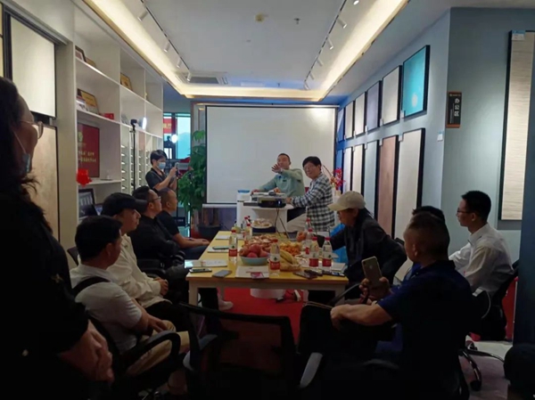 公司党支部陈林毅书记给设计师们分析每种材料亮点和功能性,介绍品牌、荣誉及企业文化。设计精英们体验玻璃贴膜与未贴膜的温度的差异,惊叹建筑隔热安全膜的功能。