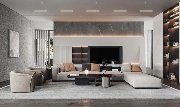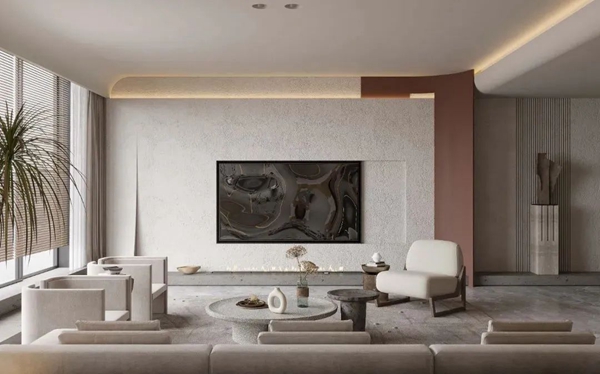 艺术涂料质感融入空间的基底,自然的肌理清晰、光影弥散,纯粹的质朴传递着生活的温度,与家的相遇,创造出舒心的客厅环境,让人们得以放松身心,陷入怡然自得的宁静中。