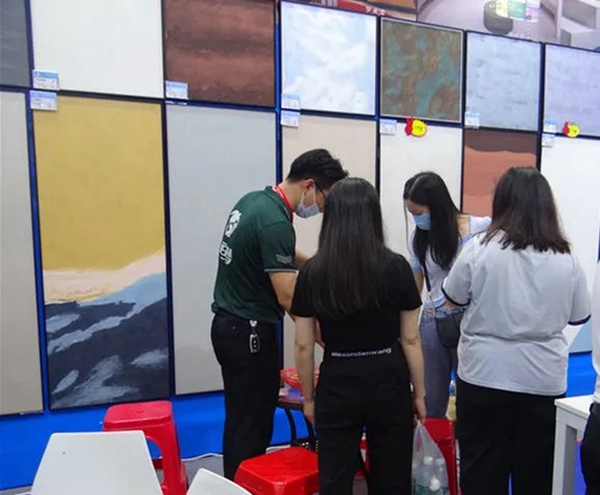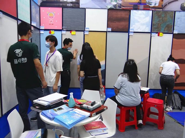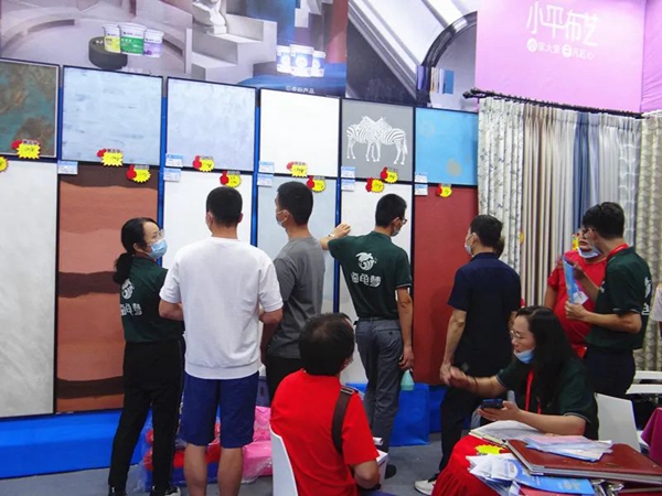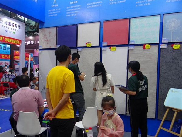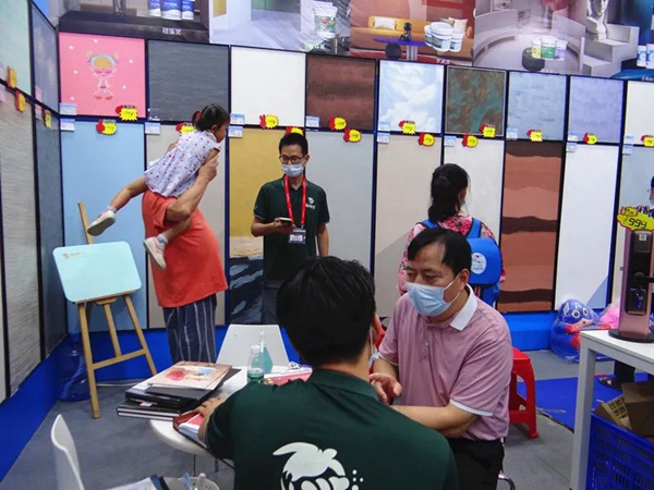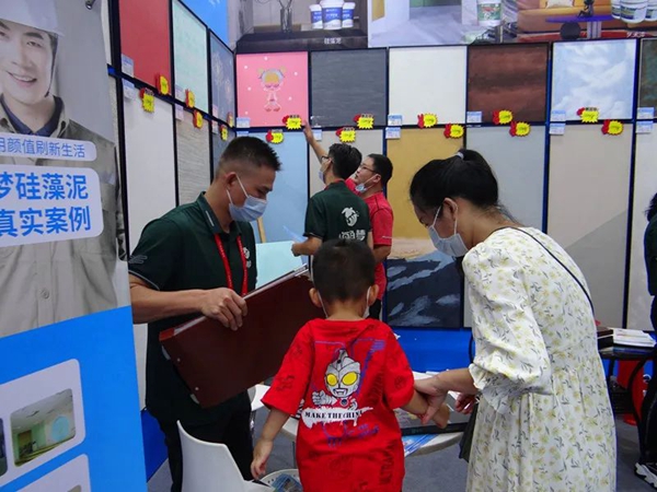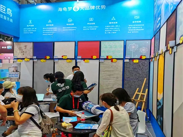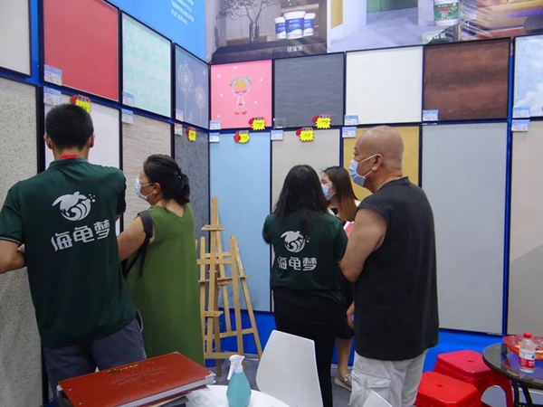 为期两天的家博会,海龟梦生态壁材展位人气爆棚,导购专业细致地介绍各种壁材产品实用性、高性价比,以及活动优惠力度。