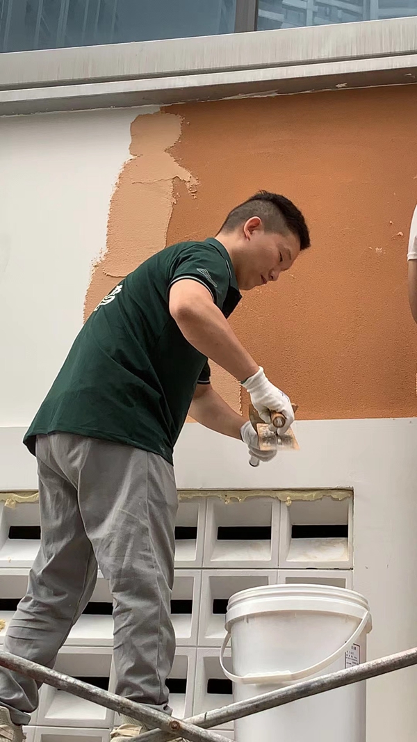板岩漆采用其独特材料,其色彩鲜明,具有板岩石的质感,可任意创作艺术造型。通过艺术施工的手法,呈现各类自然岩石的装饰效果,具有天然石材的表现力,同时又具有保温、降噪的特性。其具有绿色环保、超强石材表现、颜色持久、亮丽如新的特点。