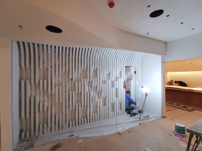 艺术涂料是一种定制的手工墙面材料,在施工前的产品样板是由服务人员、技术人员和设计师开发的,不是一般的标准化产品,在施工是由设计师、施工师傅、施工管理人员共同努力实现。