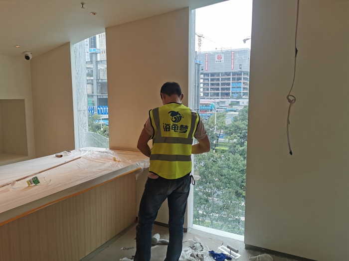 3、在施工部位玻璃下部采用防水帆布或棉质毛巾保护室内物品不被污染。
